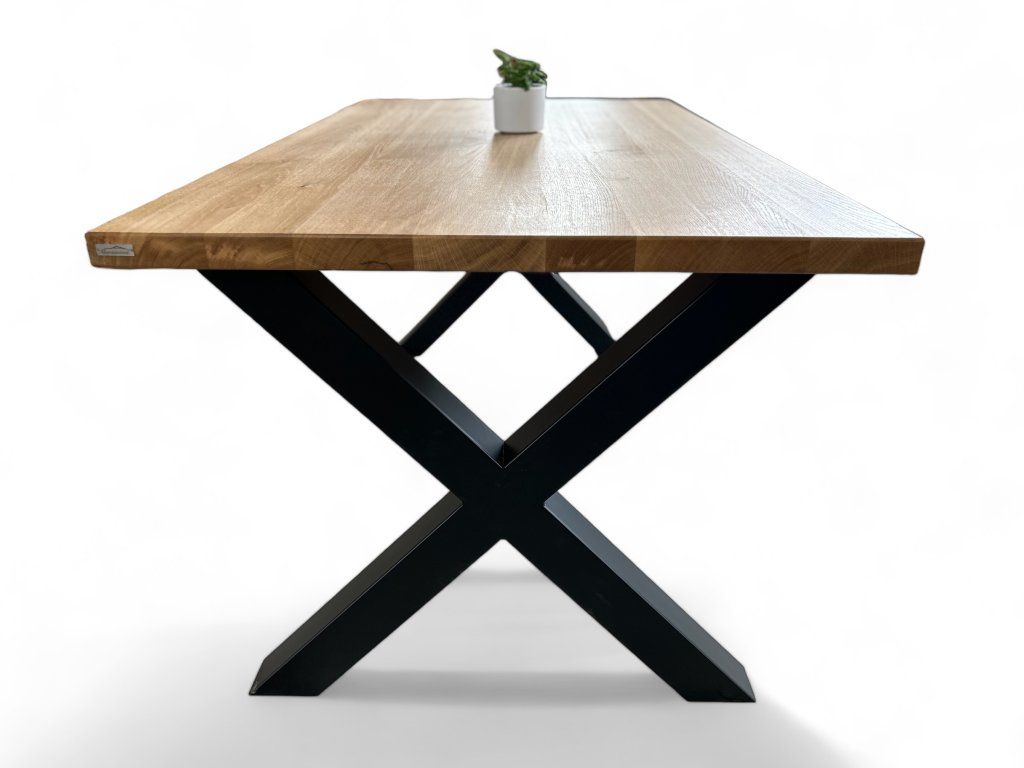 Masivní deska z dubového dřeva vyniká svou přirozenou kresbou a poctivým zpracováním. Každý kus je originál, který do prostoru přináší teplo přírodního materiálu a zároveň profesionální, sebevědomý vzhled.Robustní ocelová konstrukce tvoří pevný základ stolu a podtrhuje jeho moderní až industriální výraz.