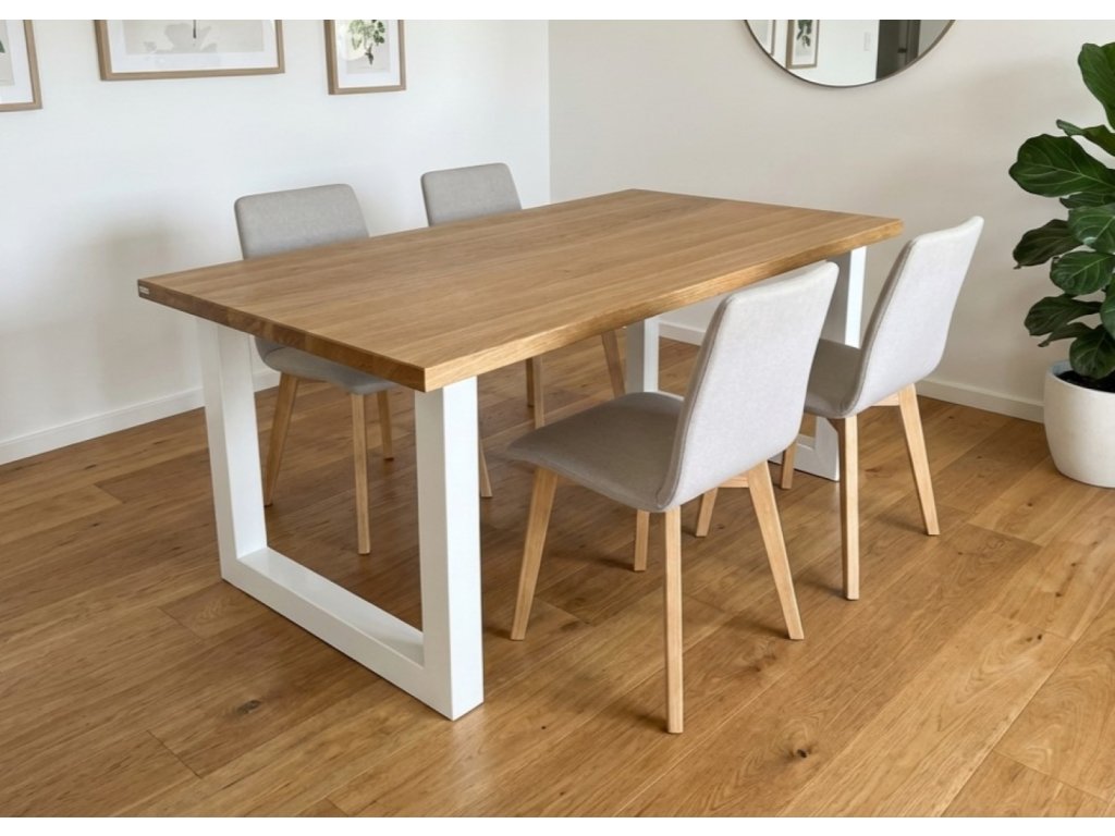 Jídelní stůl Brisbane je moderní dubový stůl s masivní dubovou spárovkou. Výška stolu je 760mm, tloušťka desky je 40mm. Stůl je osazen pevnými podnožemi ve tvaru “U” z ocelového jeklu o rozměru 80x80mm. Stůl má moderní design, která je originálním a poutavým detailem.