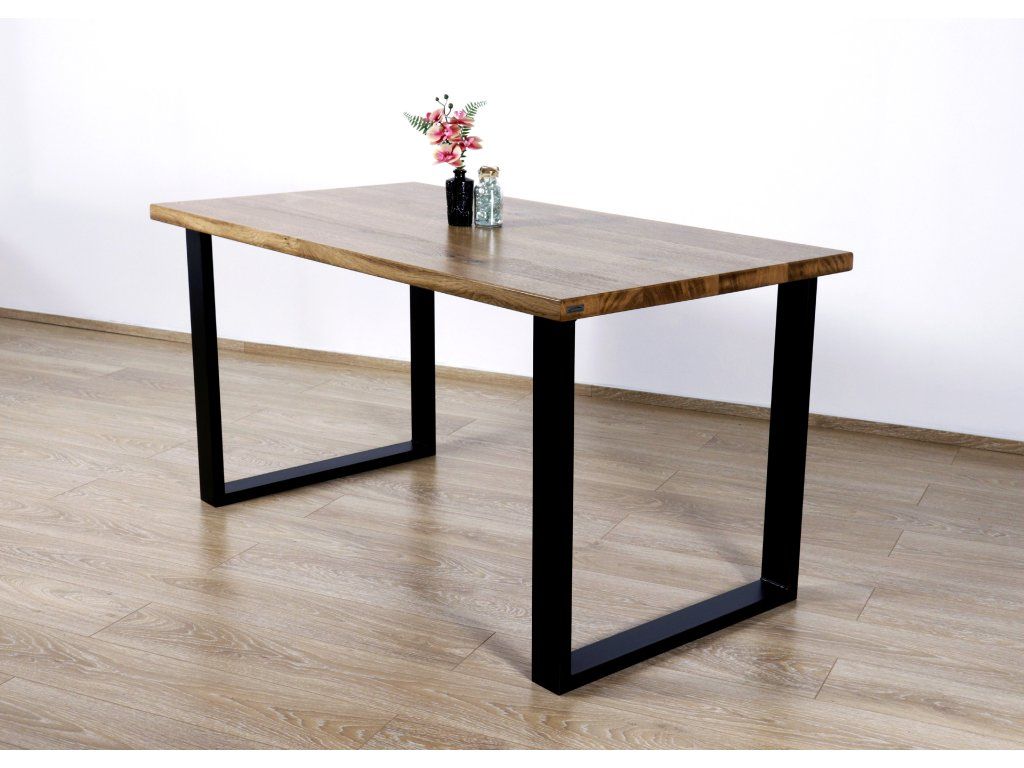 Kovové podnoží jídelního stolu v této variantě skládá ocelové jekly 80x30(mm) do tvaru "U". Tato podnož je svařena z kvalitní české oceli a stěny jeklu jsou o tloušťce 3 mm. Tato kombinace přináší velkou pevnost a stabilitu.