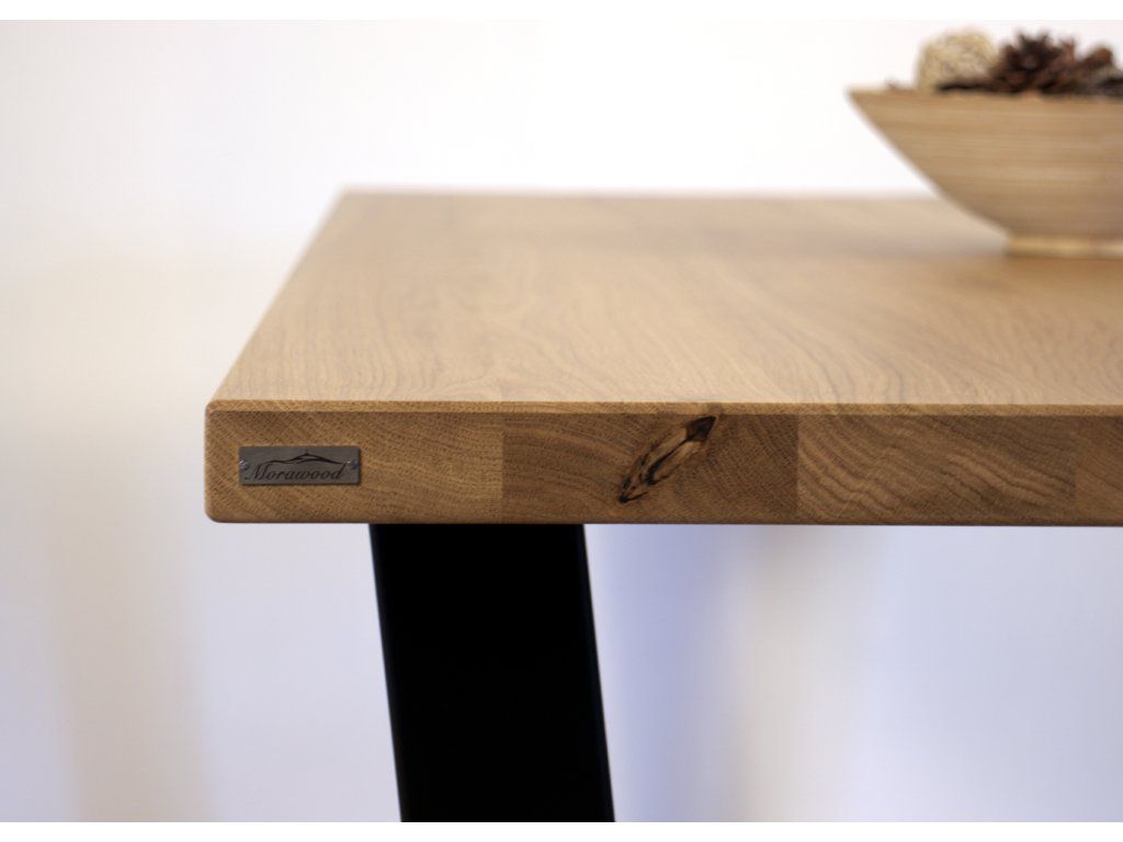 Masivní stolová deska vyniká přirozenou kresbou dřeva a precizním zpracováním různých hran. Každý kus je originál díky jedinečné struktuře masivu.