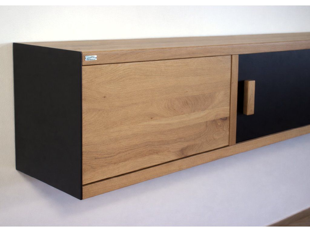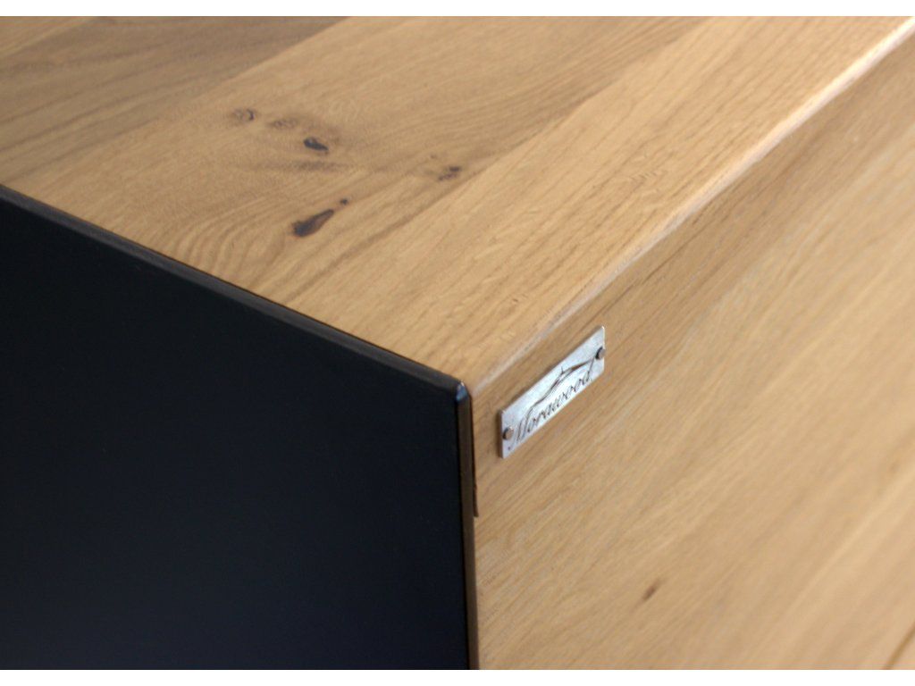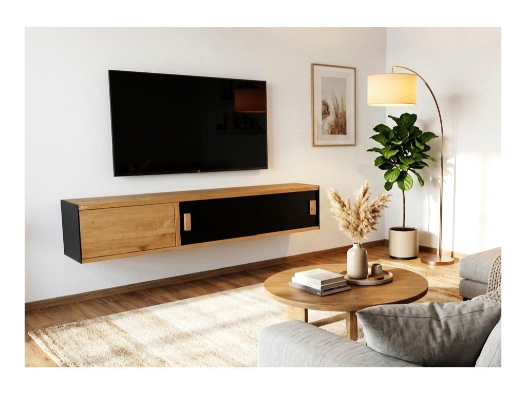 Minimalismus, poctivý materiál a industriální charakter. Závěsná TV skříňka Tyrol je kombinací masivního dřeva a pevné oceli, která vytváří výrazný, moderní celek s dlouhou životností.